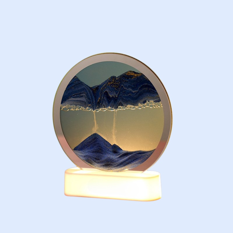 Bedroom desktop sand painting night light creates a relaxing ambiance, features unique moving sand art, soft LED lighting, and is ideal for home decor or gifts.